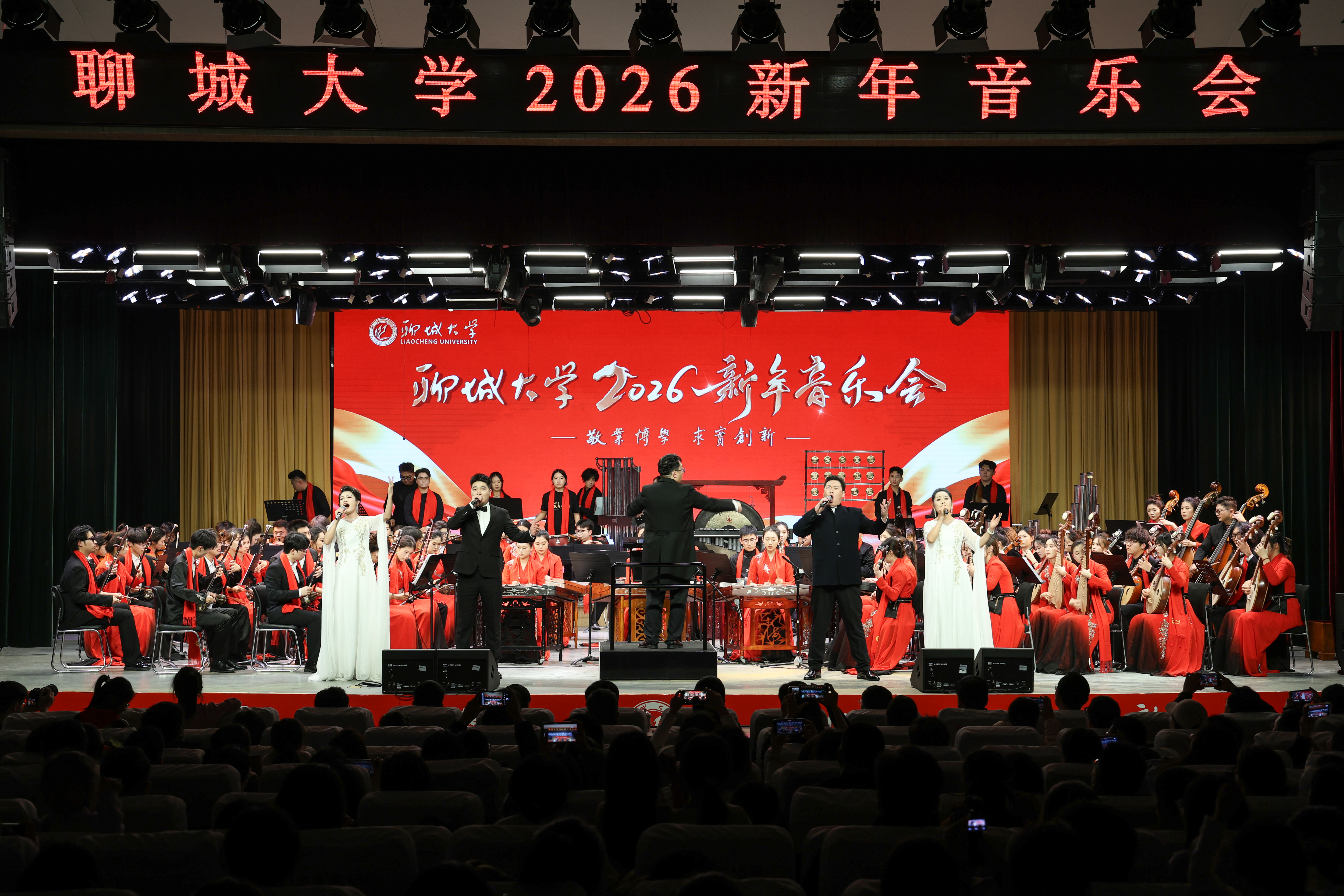 音乐会由校团委主办、音乐与舞蹈学院承办,涵盖民族管弦乐、西洋管弦乐、声乐合唱等多种艺术形式,呈现了一场跨越时空、融汇古今的视听盛宴,实现了艺术审美与思政教育的有机统一,展现了师生同心筑梦、笃行不怠的精神风貌。新的一年,聊大人将带着这份感动与鼓舞,回望来路、远眺未来,共同书写学校高质量发展的崭新篇章!
