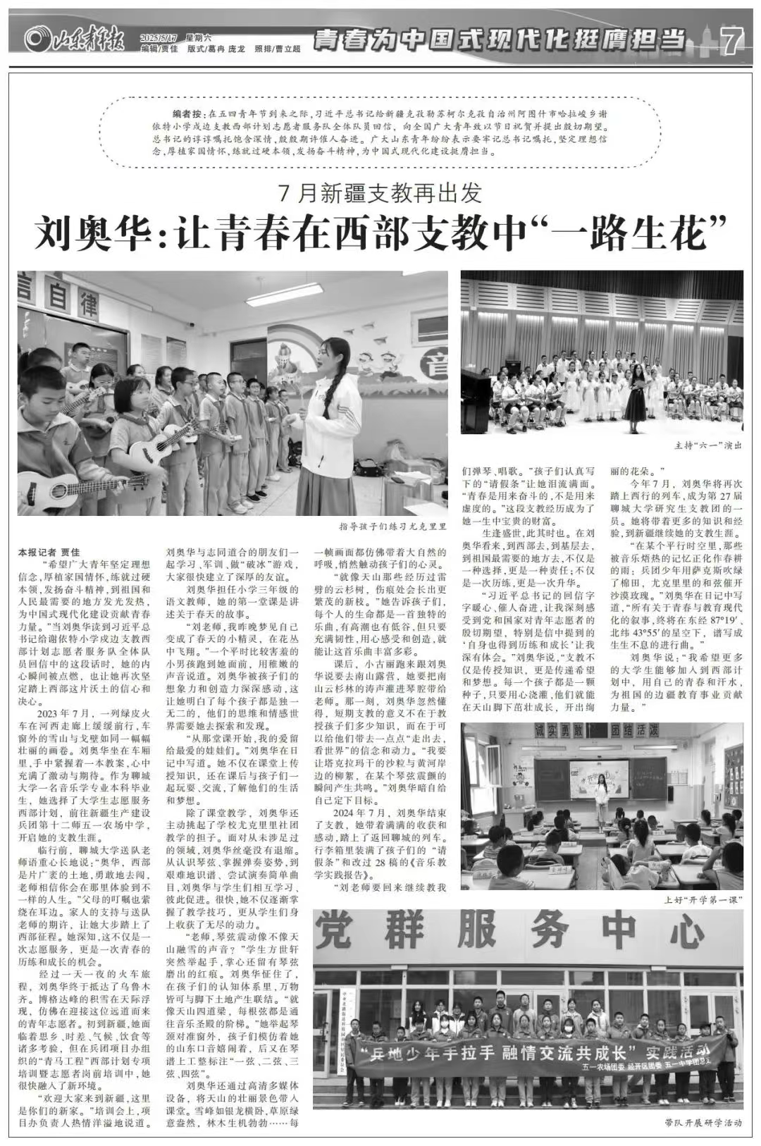 共青团省委官微、《山东青年报》报道聊城大学赴西部支教学子