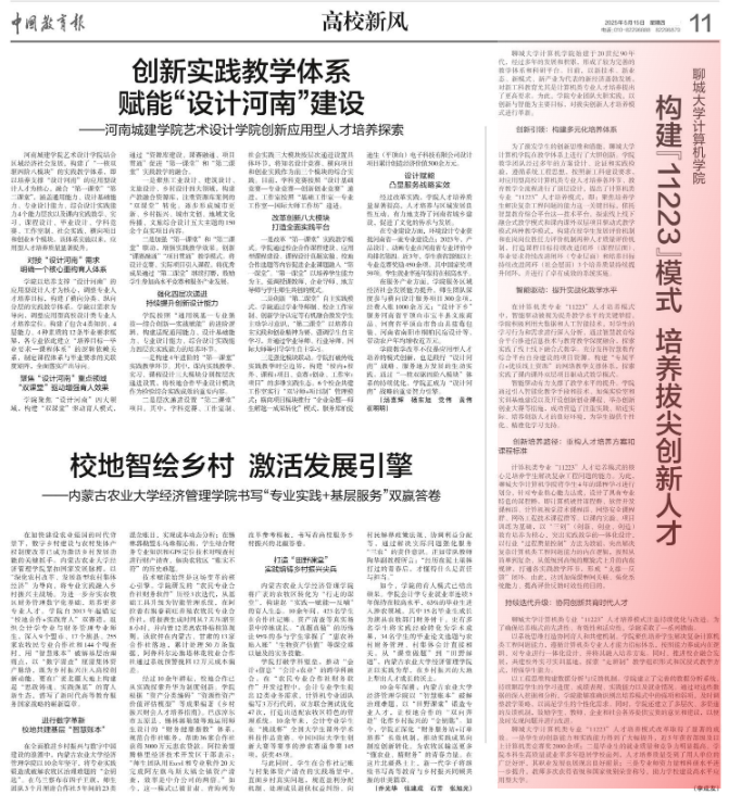 【编者按】5月15日,《中国教育报》“高校新风”版面以《构建“11223”模式 培养拔尖创新人才》为题,报道我校计算机学院在计算机类专业拔尖创新人才培养工作中的先进教育理念和做法。