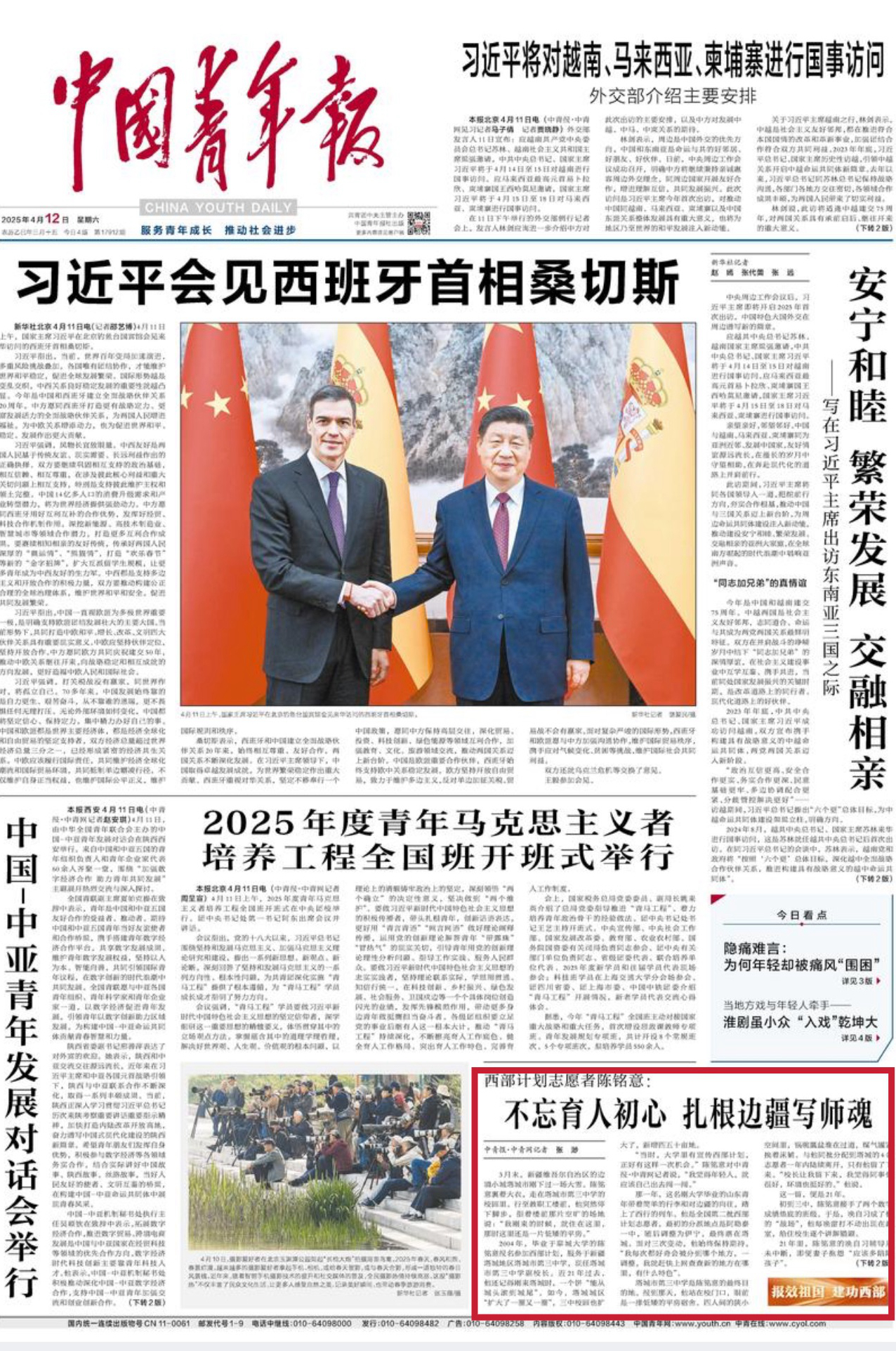 《中国青年报》头版报道聊城大学校友“扎根边疆写师魂”