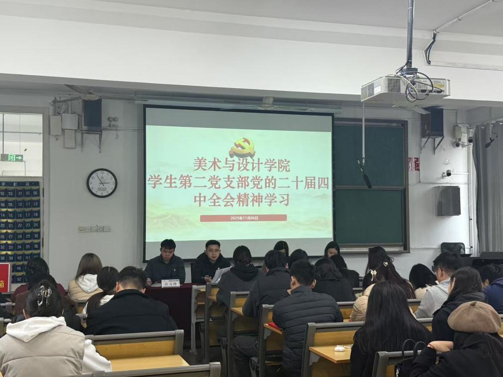 为深入学习贯彻党的二十届四中全会精神,精准把握“十五五”规划的战略部署。11月6日,美术与设计学院学生第二党支部组织全体党员召开专题学习会议,专题学习由党支部书记崔洁康主持。