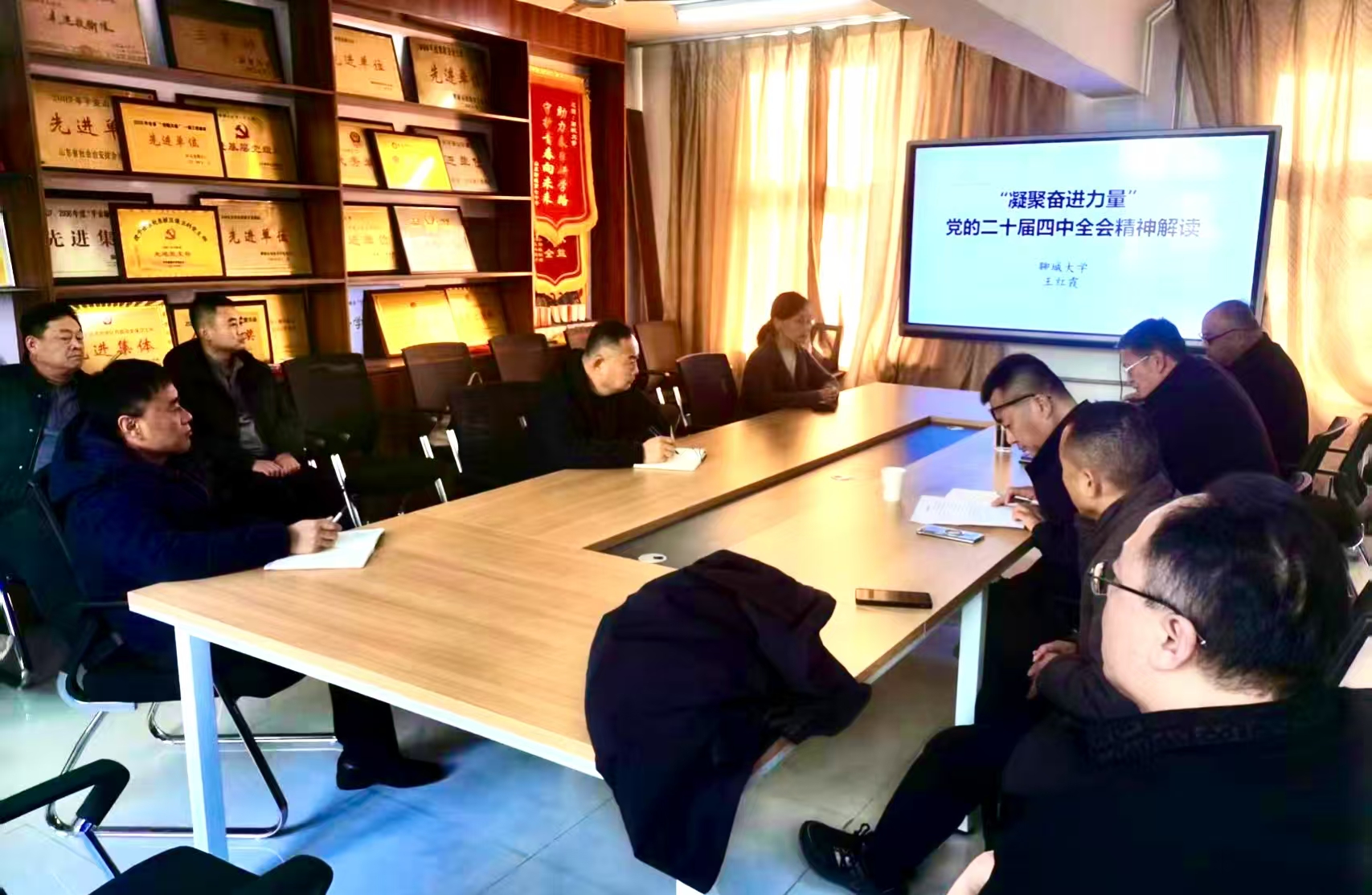 11月27日下午,安全保卫处举行学习贯彻党的二十届四中全会精神宣讲报告会。学校宣讲团成员、马克思主义学院王红霞教授作了题为《凝集奋进力量——党的二十届四中全会精神解读》的宣讲报告。会议由安全保卫处副处长丁兆礼支持。安全保卫处所有职工听取了报告。
