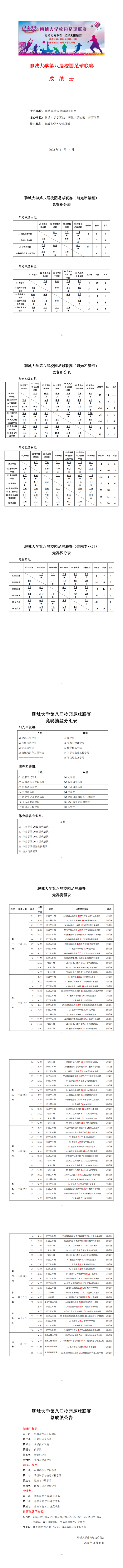 聊城大学第八届校园足球联赛成绩册